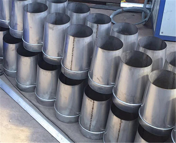 然後,對裁剪好的鐵皮管段進行內壁和外壁的焊接(jiē)。如果是小口(kǒu)徑管道,可采用電焊;對於大口徑管道(dào),則可能(néng)需要弧焊或CO2氣體保護焊等焊接技術(shù)。同時,為了保證密(mì)封性,還需在接縫處進行(háng)防腐處理(lǐ)並打(dǎ)密封膠。